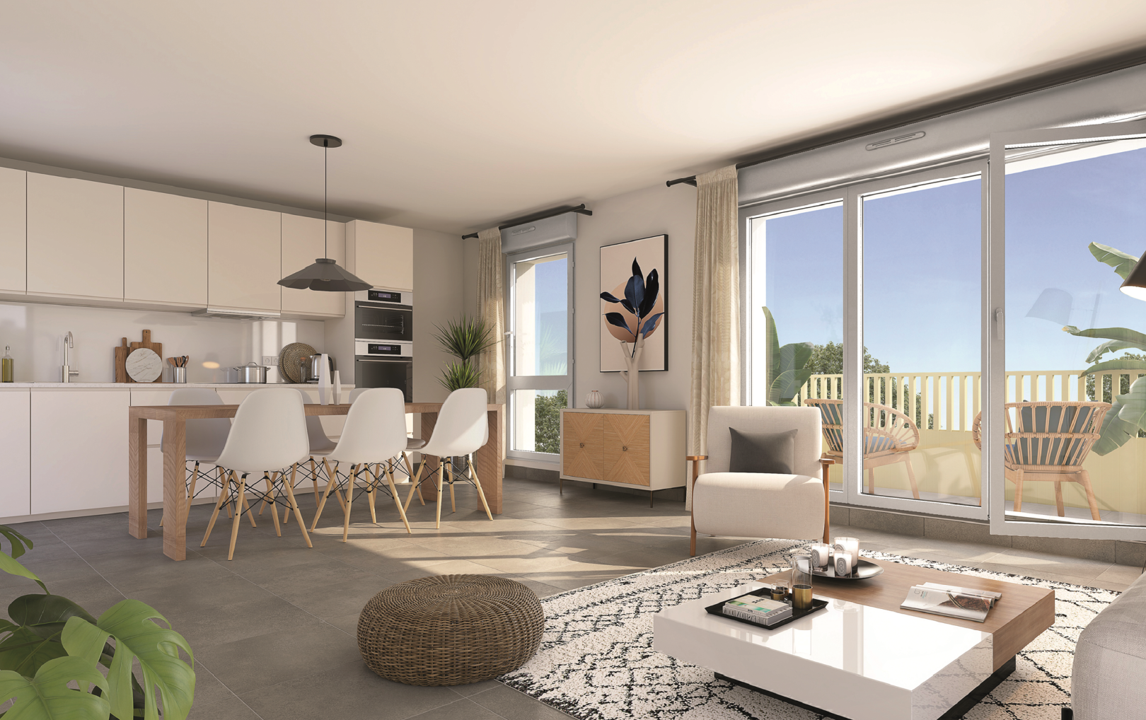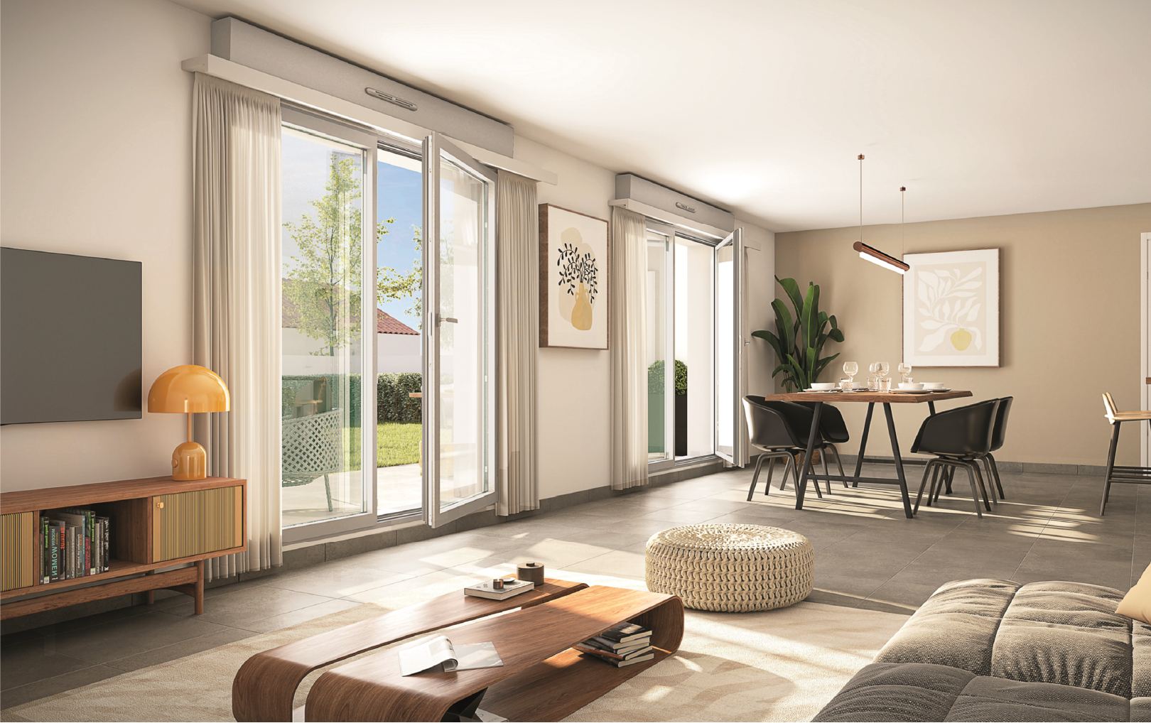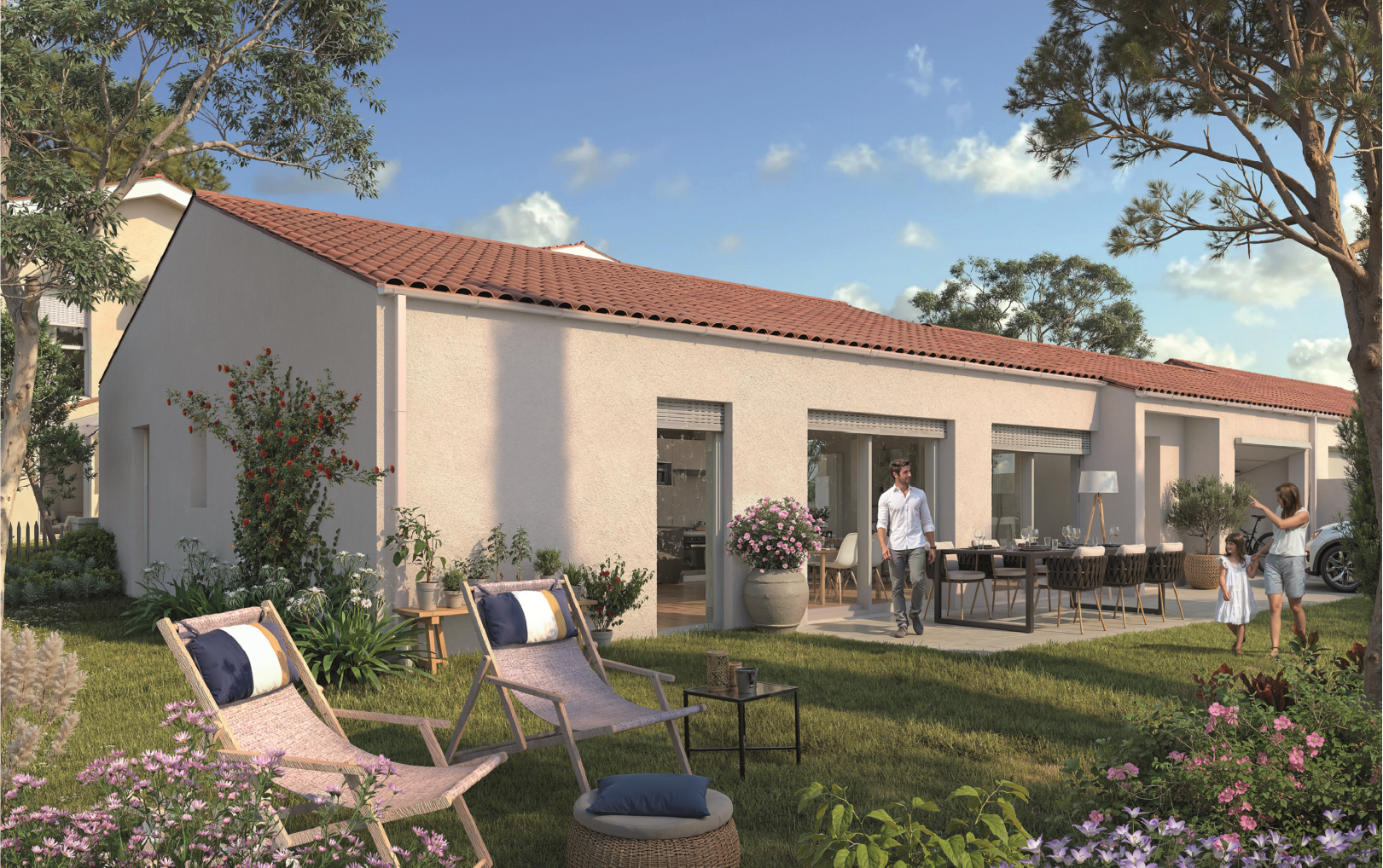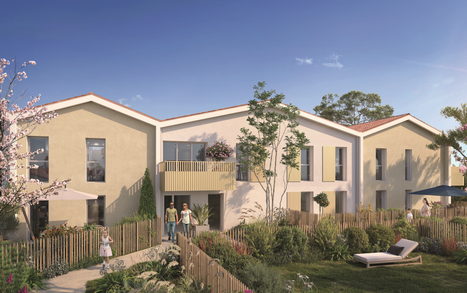 Les appartements neufs, du T2 au T4, se distinguent par une architecture sobre et contemporaine. Chaque logement dispose d’un espace extérieur privatif — terrasse ou jardin — conçu pour prolonger agréablement les pièces de vie. Les matériaux utilisés sont classiques, durables et élégants, assurant une parfaite intégration à l’ambiance pavillonnaire du quartier.